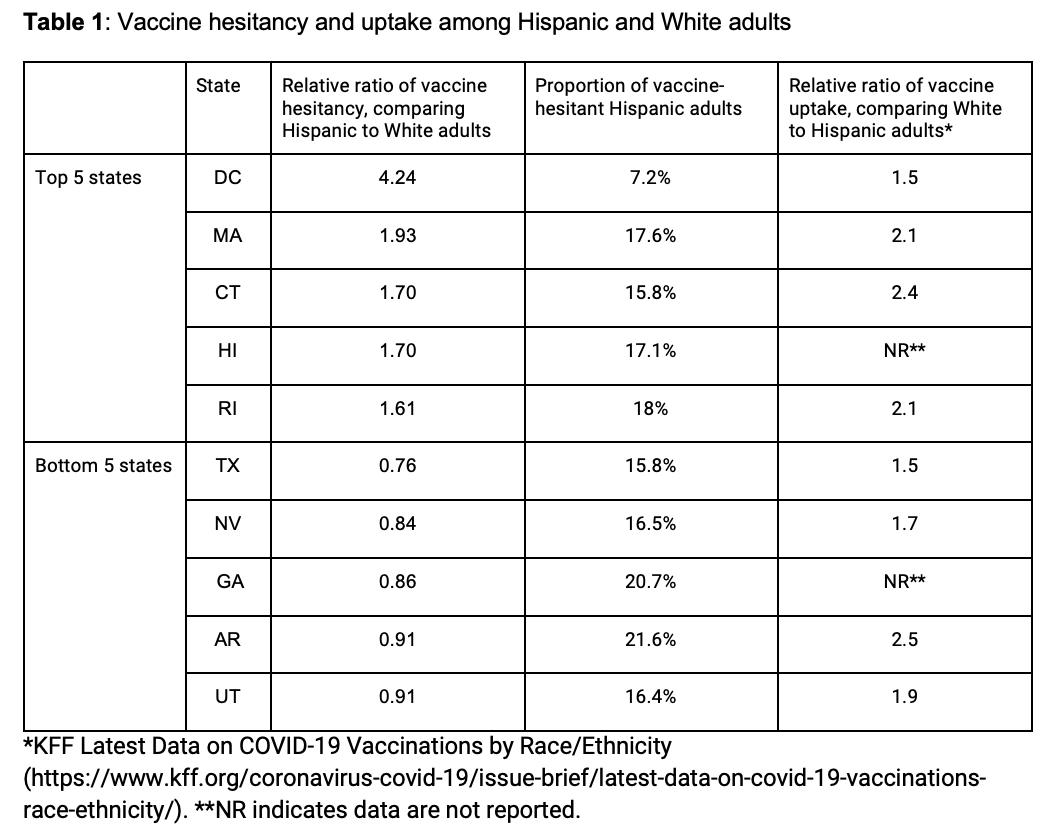 Disparities in vaccine hesitancy between Hispanic and non-Hispanic White adults
